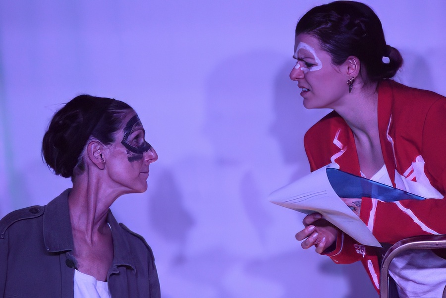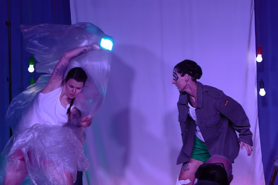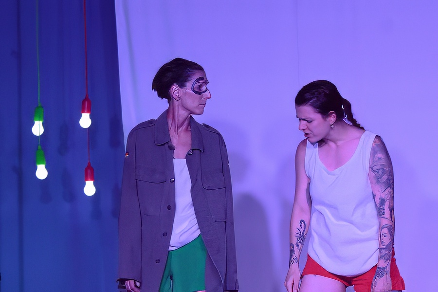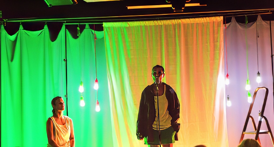 Ein junger Kriegsheimkehrer irrt in seiner Heimatstadt herum auf der Suche nach seiner Familie und nach Wärme und Essen. Er erlebt alle Begegnungen als fremd und abweisend. Die beiden Schauspielerinnen zeigten in intensiven Szenen, wie der Krieg die Menschen mitleidslos und hart gemacht hat und der Protagonist „draußen vor der Tür“ bleiben muss.